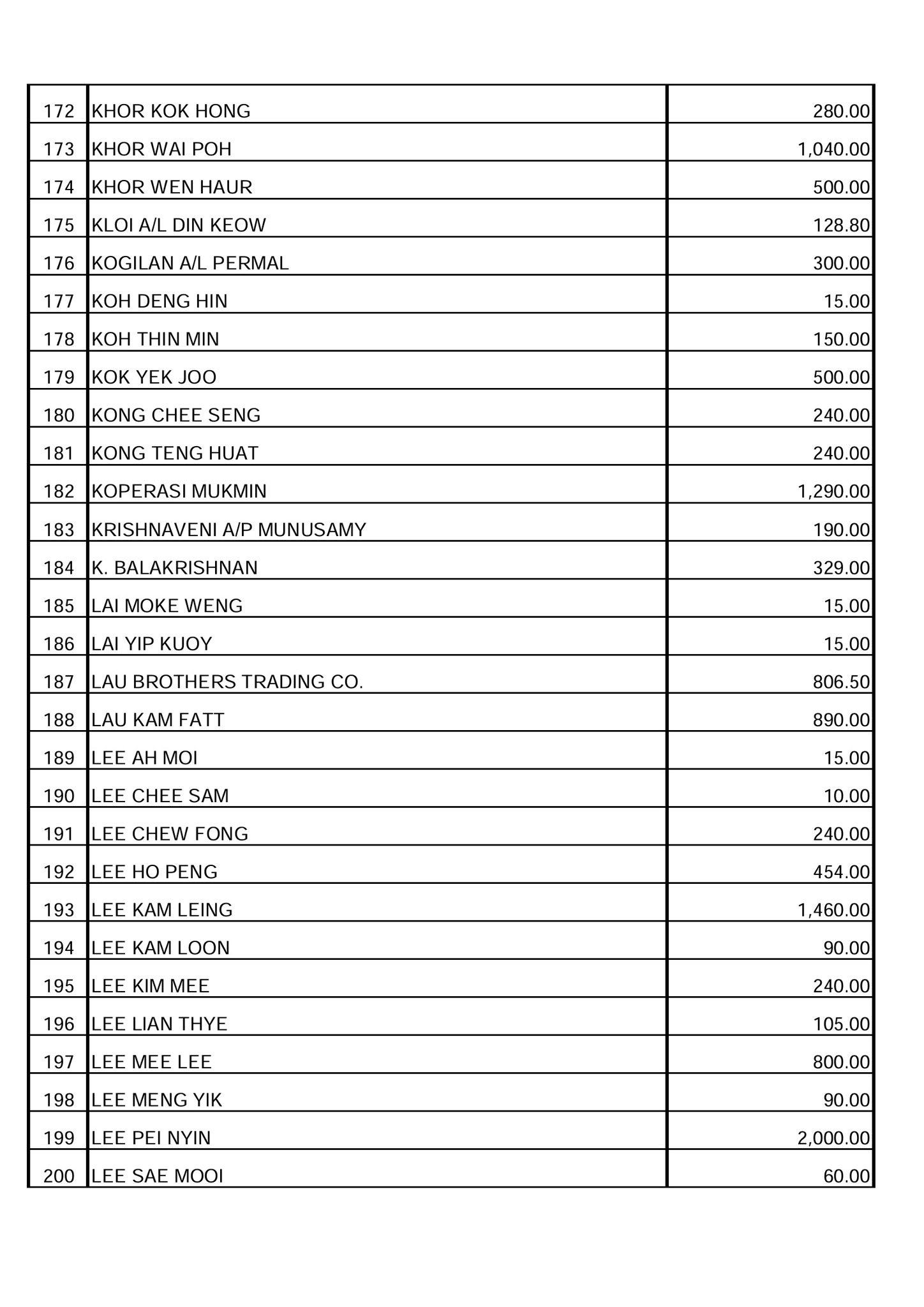 Berikut adalah senarai nama pihak yang terlibat dalam kategori deposit tidak aktif bagi sewa dan pelbagai :