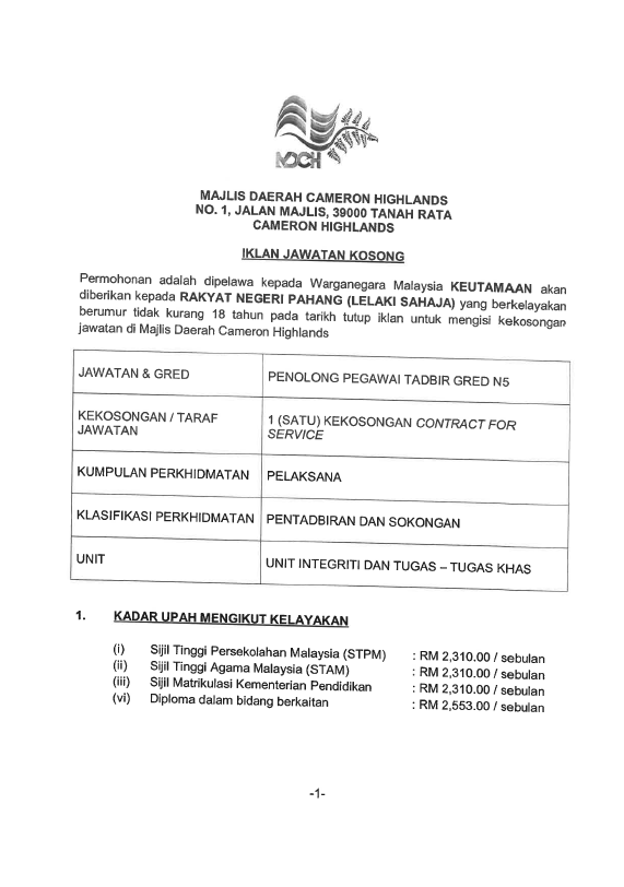 1. PEMBANTU TADBIR GRED N1 (COS)